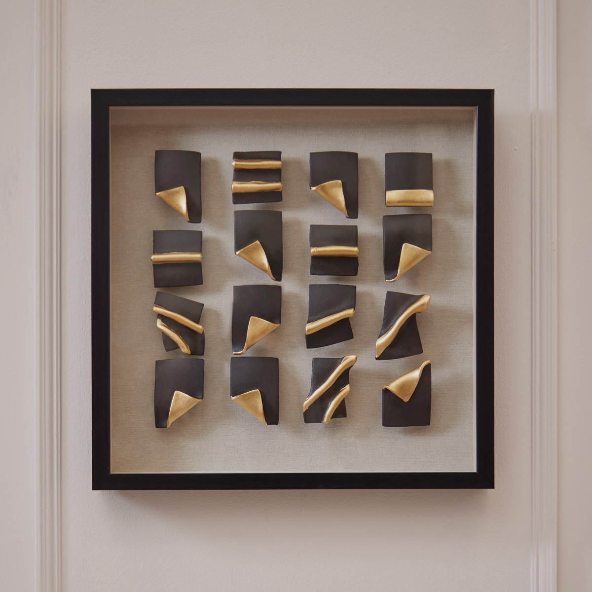 Our 3D Ceramic Black & Gold Wall Art adds texture, balance, and a hint of gold to your space. A framed geometric design that fits seamlessly into any modern interior.