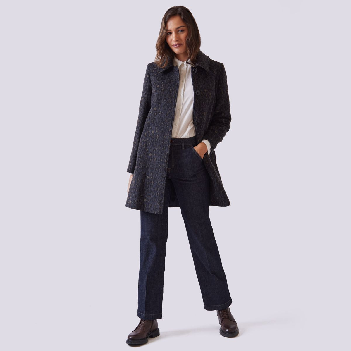 This stylish car coat offers both functionality and sophistication. In a tonal leopard print, the coat is lined and features a chic collar with top and hidden button placket closure. Made of a wool blend, this style is slightly A-line with welt pockets and a back vent for comfort. Great for on the go, the coat can be worn casually with a fine knit jumper, jeans and trainers or over a midi-dress with ankle boots for an elevated look.