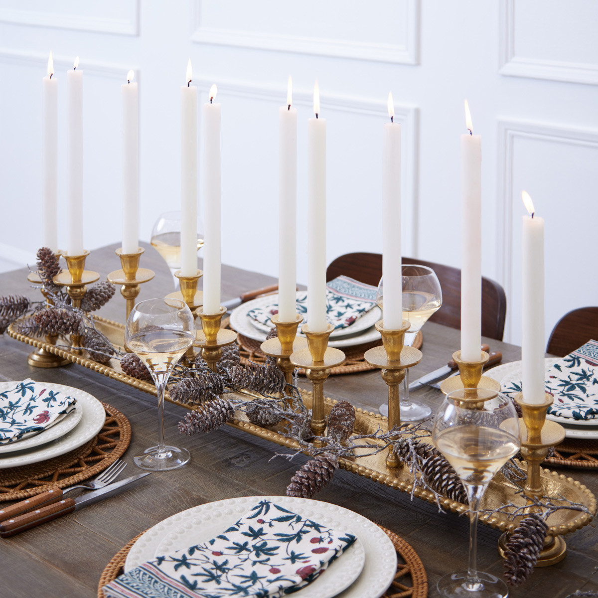 The Austin Candle Tray is a stunning and versatile set, perfect for adding a touch of glamour to any tablescape. With its gold finish, it serves as an exquisite centrepiece, enhancing the ambience and bringing an elegant glow to your dining room.