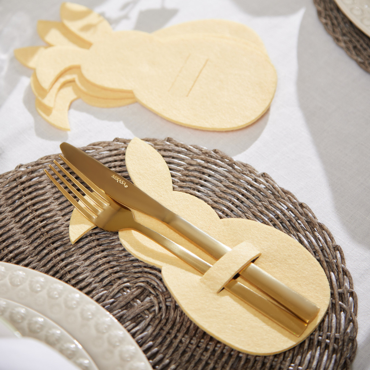 Our Bunny Cutlery Holder Set of 4 is a charming and practical addition to your dining decor, featuring soft felt holders in a soft yellow colour to keep your cutlery organised and easily accessible. These holders not only add a decorative touch to your table settings but also help streamline your dining experience during gatherings and special occasions.