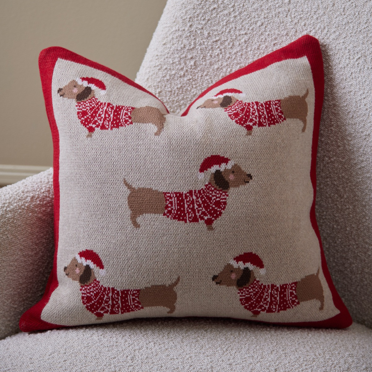 Add a dash of festive fun with the Christmas Pooch Cushion, dotted with dachshunds in cosy Christmas jumpers and Santa hats. Finished with red piping, it’s a bright and charming accent for the season.