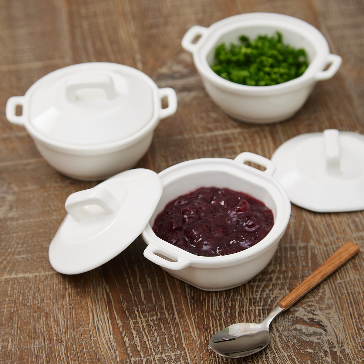 This Set of 3 classic serving dishes are perfect for all occasions. Use for gravy and other garnishes at any time of the year. Or fill with hummus, guacamole and salsa....perfect for dipping and sharing with family and friends!