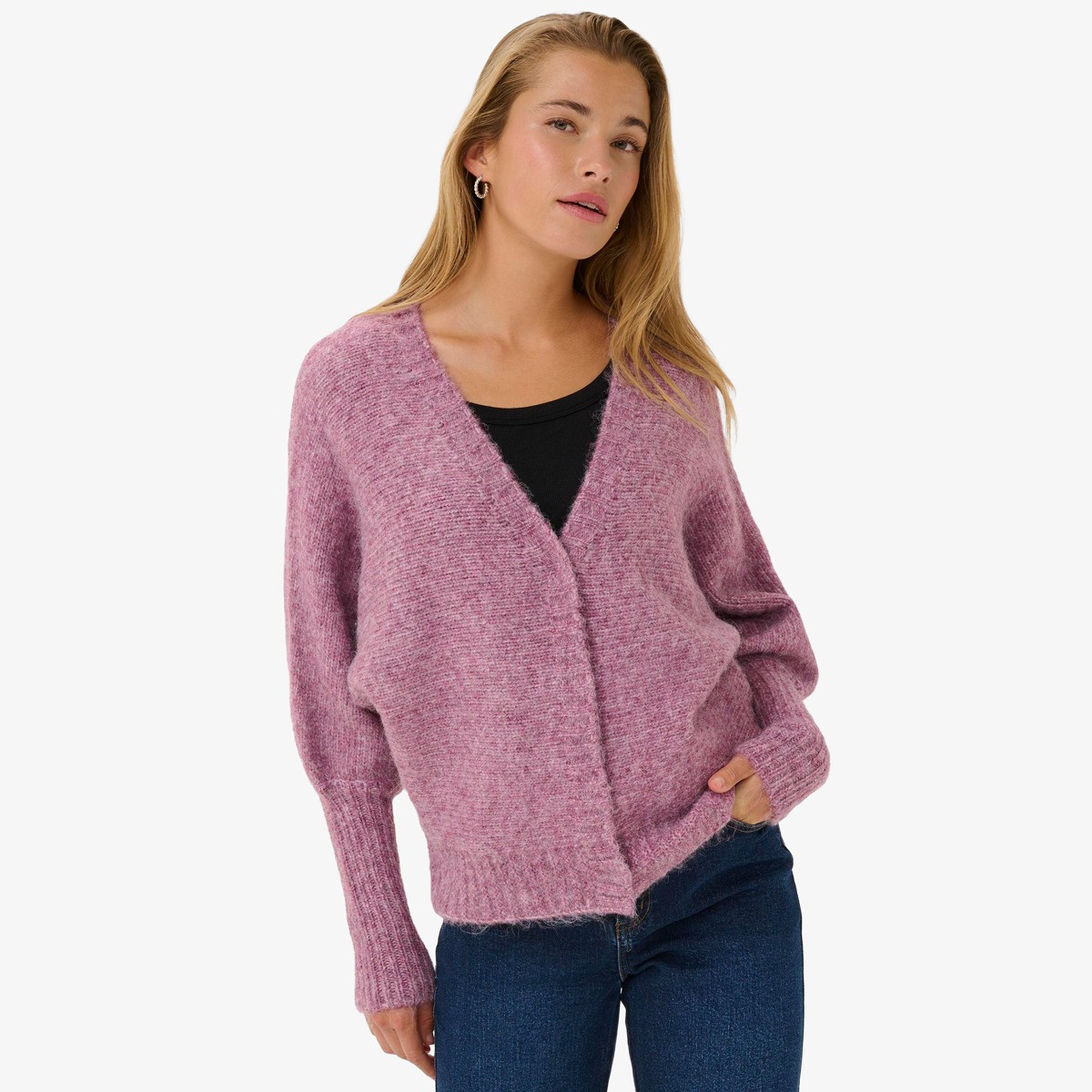 The Cuba Cardigan comes in a tulip melange featuring a deep V-neckline, dropped shoulders, and ribbed trims. Soft and cozy making it perfect for layering on cooler days.
