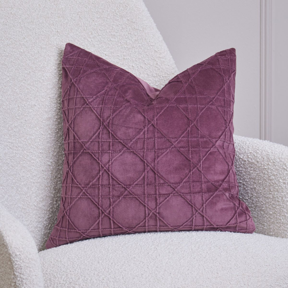 The Diamond Pintuck Cushion in an aubergine colour exudes elegance and sophistication with its meticulously crafted diamond-shaped pintuck detailing, adding a touch of texture and visual interest to your décor. The deep aubergine hue brings a sense of luxury and warmth to your living space, making it an ideal accent piece for a cozy and stylish interior. Its plush and inviting feel ensures both aesthetic appeal and comfort, making it a versatile addition to any home.