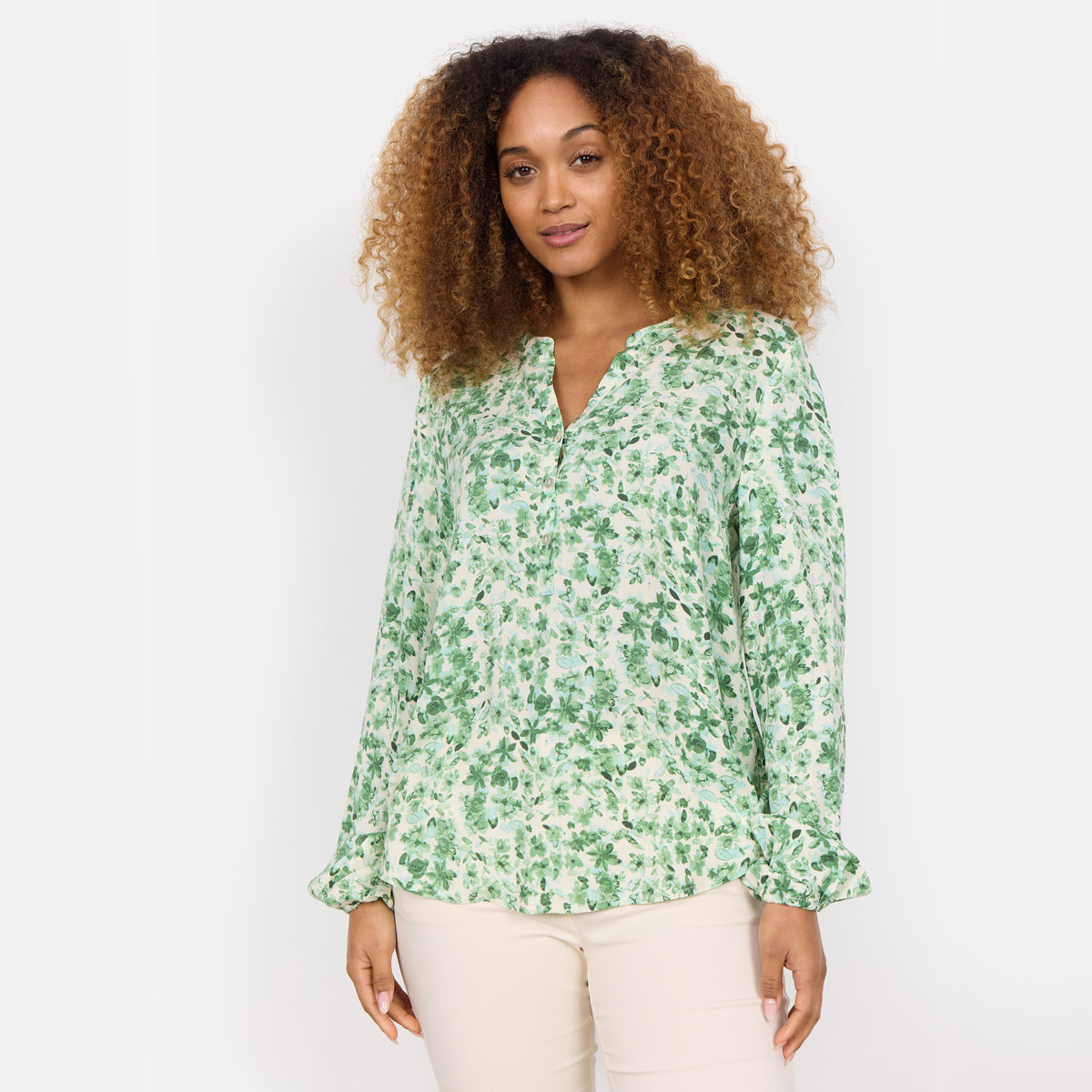 Add some freshness to your look with this feminine floral print blouse. With a flattering V-neckline with half button placket, the blouse has long sleeves with elasticated cuffs. In a relaxed fit with a slightly dipped hem at the back, this piece is versatile for both work and casual wear. Style with a blazer, trousers and loafers for the office or with a cardigan, jeans and trainers for a comfortable effortless look.