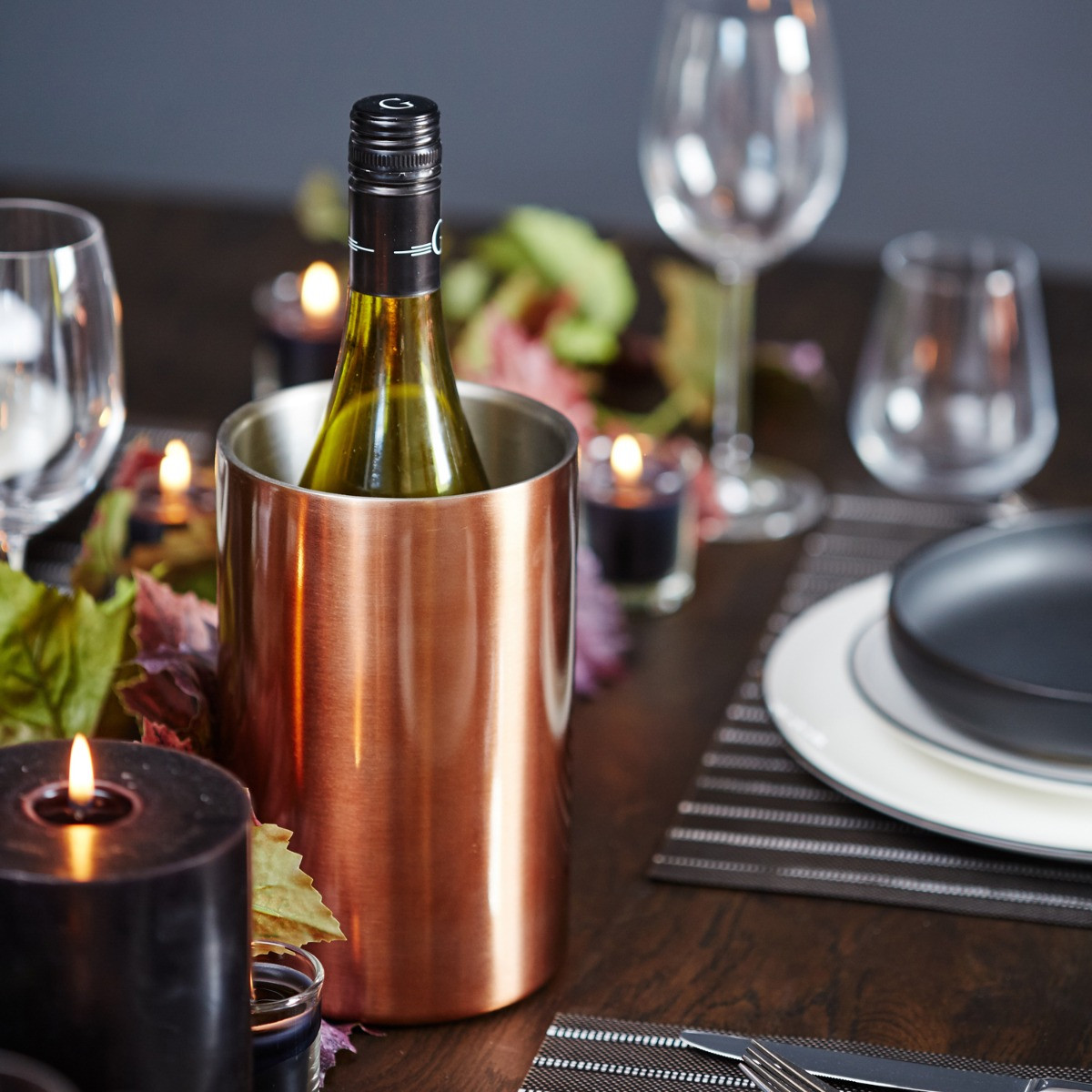 This simple yet stylish double walled wine cooler has a polished copper exterior and a contrasting stainless steel interior and will keep chilled bottles cooler for longer.