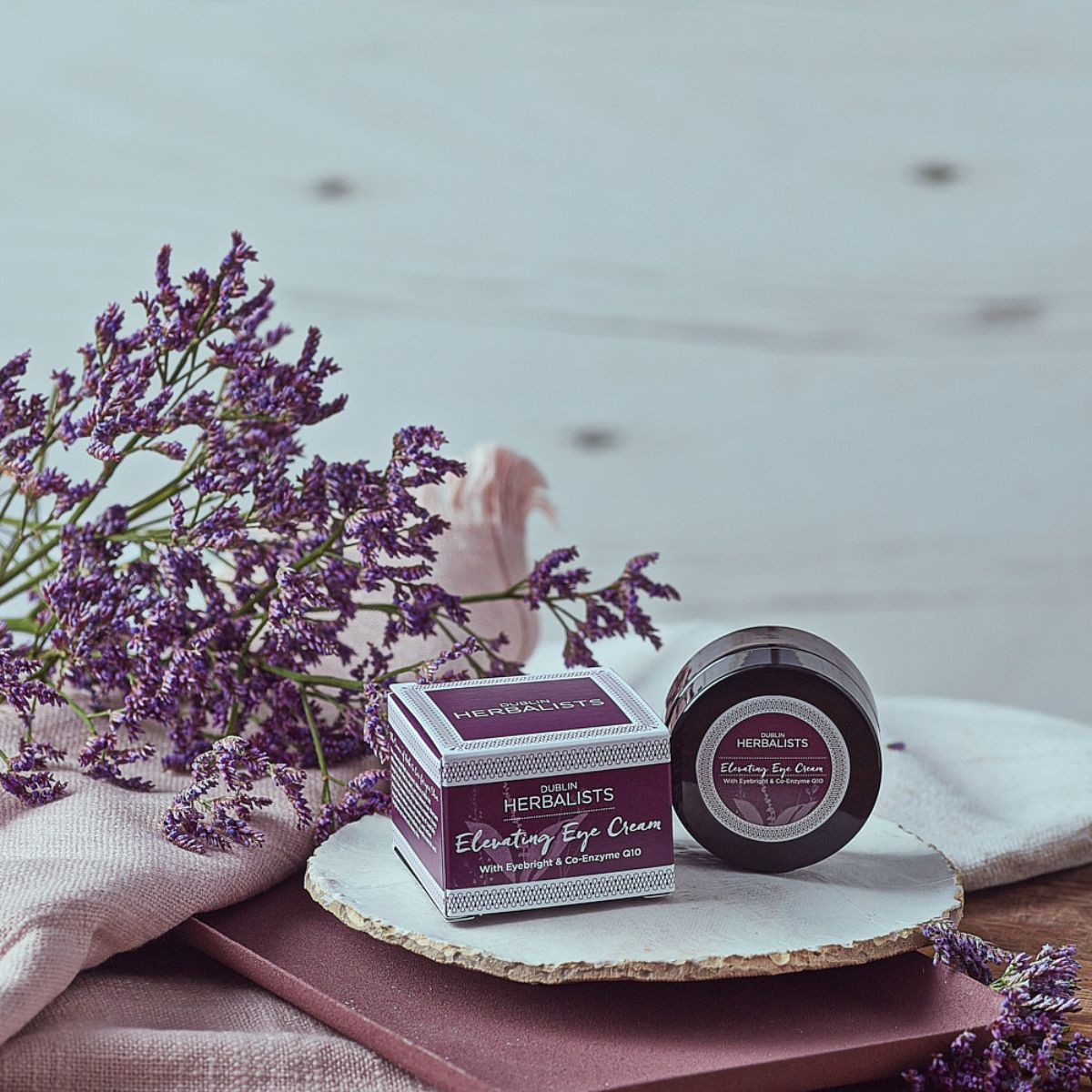 Dublin Herbalists all-natural, anti-ageing Elevating Eye Cream is specially developed to strengthen and deeply hydrate the delicate skin around the eyes. Enhanced with the soothing yet powerful properties of Eyebright Glycerol, Co-Enzyme Q10 and Eco Marine Algae Extract, it stimulates natural collagen production while reducing the appearance of dark circles, puffiness and fine lines.