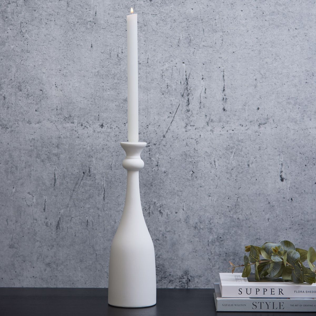 The Elie Candlestick Holder in Matt White is a contemporary and minimalistic candle holder designed to complement modern decor. Its sleek and matte white finish adds a touch of elegance to any tabletop or mantel, making it a stylish accessory for both everyday use and special occasions.