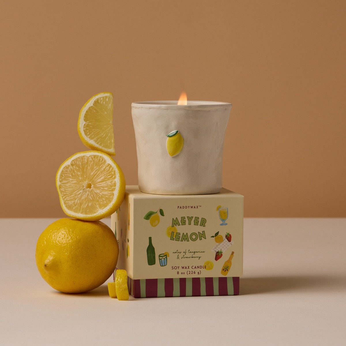 Infuse your space with the delightful aroma of a summer evening. With top notes of lemon leaves and tangerine, middle notes of strawberry vine and melon and base notes of saffron. The ceramic vessel is beautifully hand painted and completely food safe when you are finished with your candle!