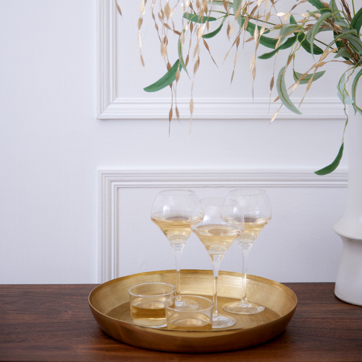 Our Embossed Gold Tray in a gold finish is a fantastic addition to both your Décor or Serveware. The intricate design is hand embossed making it a stunning statement piece for displaying decorative items, whilst the handles make it a versatile piece for serving both food and drinks.