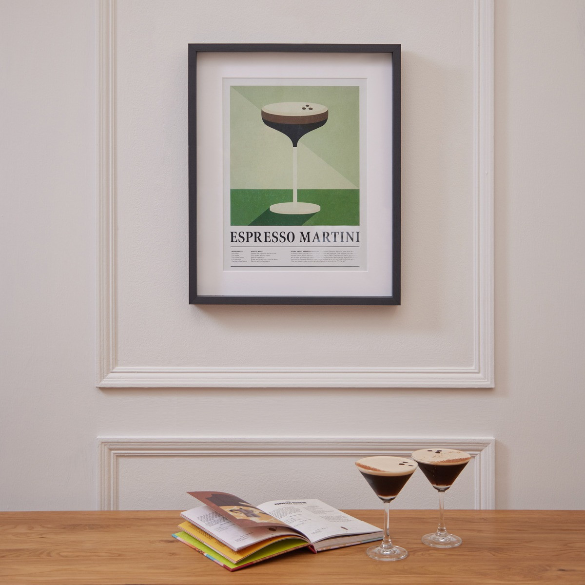 Bring a fresh, uplifting touch to your wall with our Espresso Martini Artwork. The crisp illustration and soft green palette create a bright, easygoing look, framed neatly for a tidy finish.