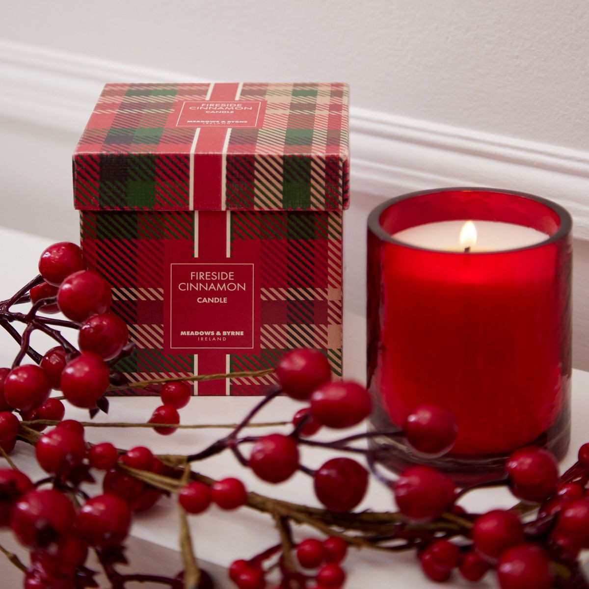 Our Fireside Cinnamon Candle is encased in a clear red hammered glass holder. With notes of Bergamot, cinnamon and Clove the scent is sure to transport you to a crackling fireside setting. This candle comes boxed making it a thoughtful gift this season.