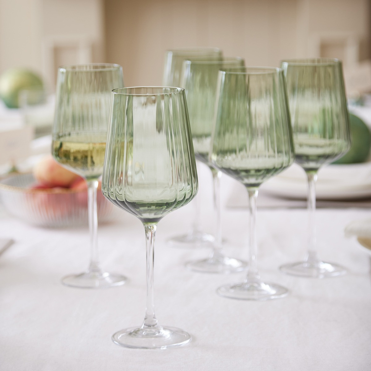 The Florence Glassware Collection features a delicate ribbed design in a smoky green hue. Elegant and refined, the ample bowl of the wine glass allows the wine to breathe and develop. Slim stems lead to a stable base, perfect for when the drinks start to flow!