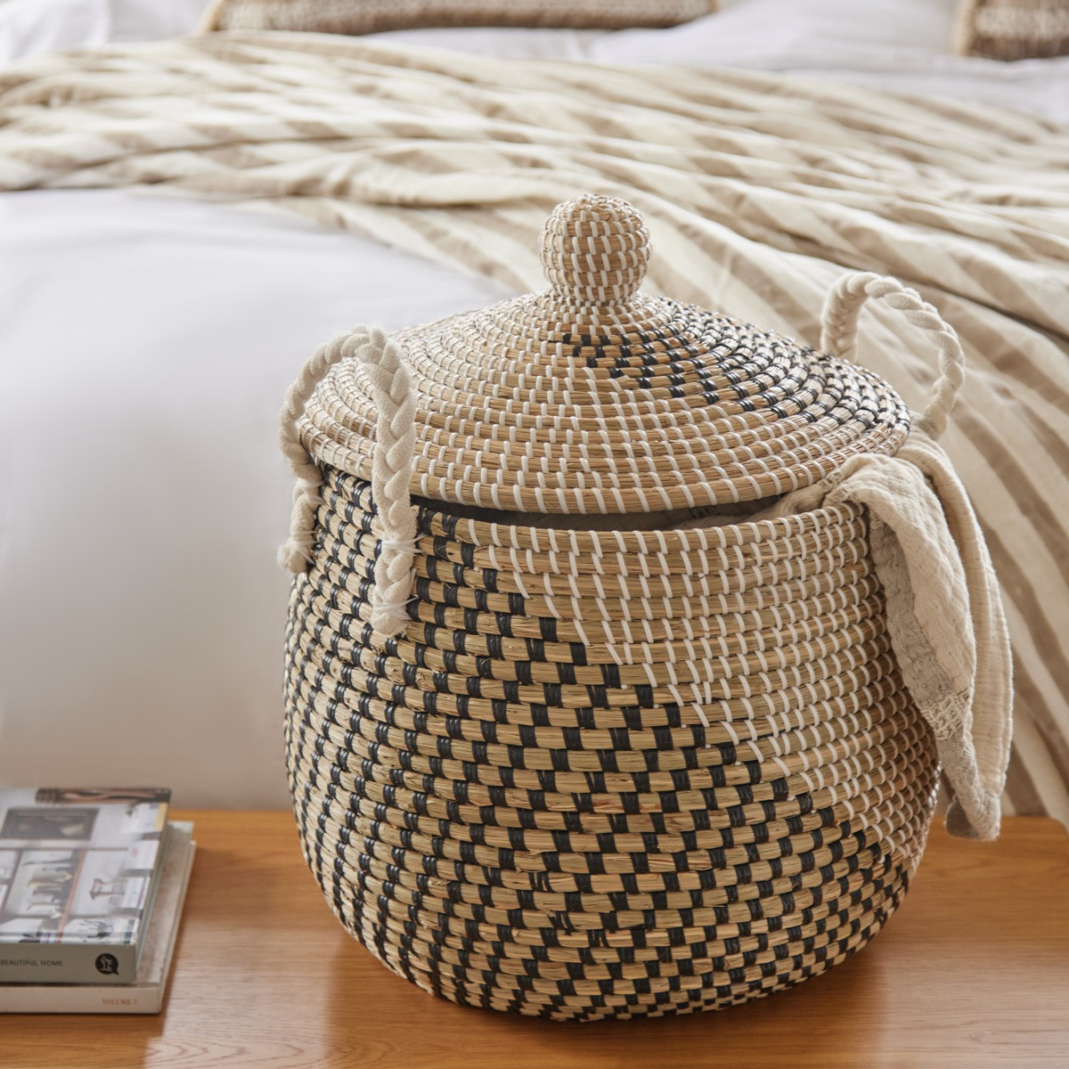 Add natural texture to your home with the Gibson Laundry Basket. Woven with a striking two-tone design, it features a fitted lid and sturdy handles for easy carrying.