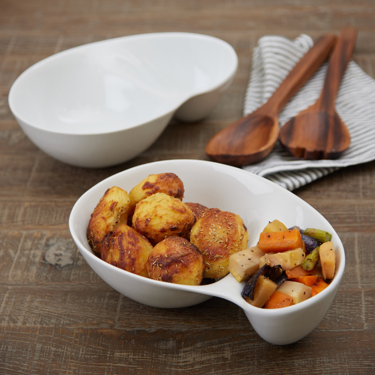 Serve up your sides in style with the Greta two section bowl - perfect for chips and dips.