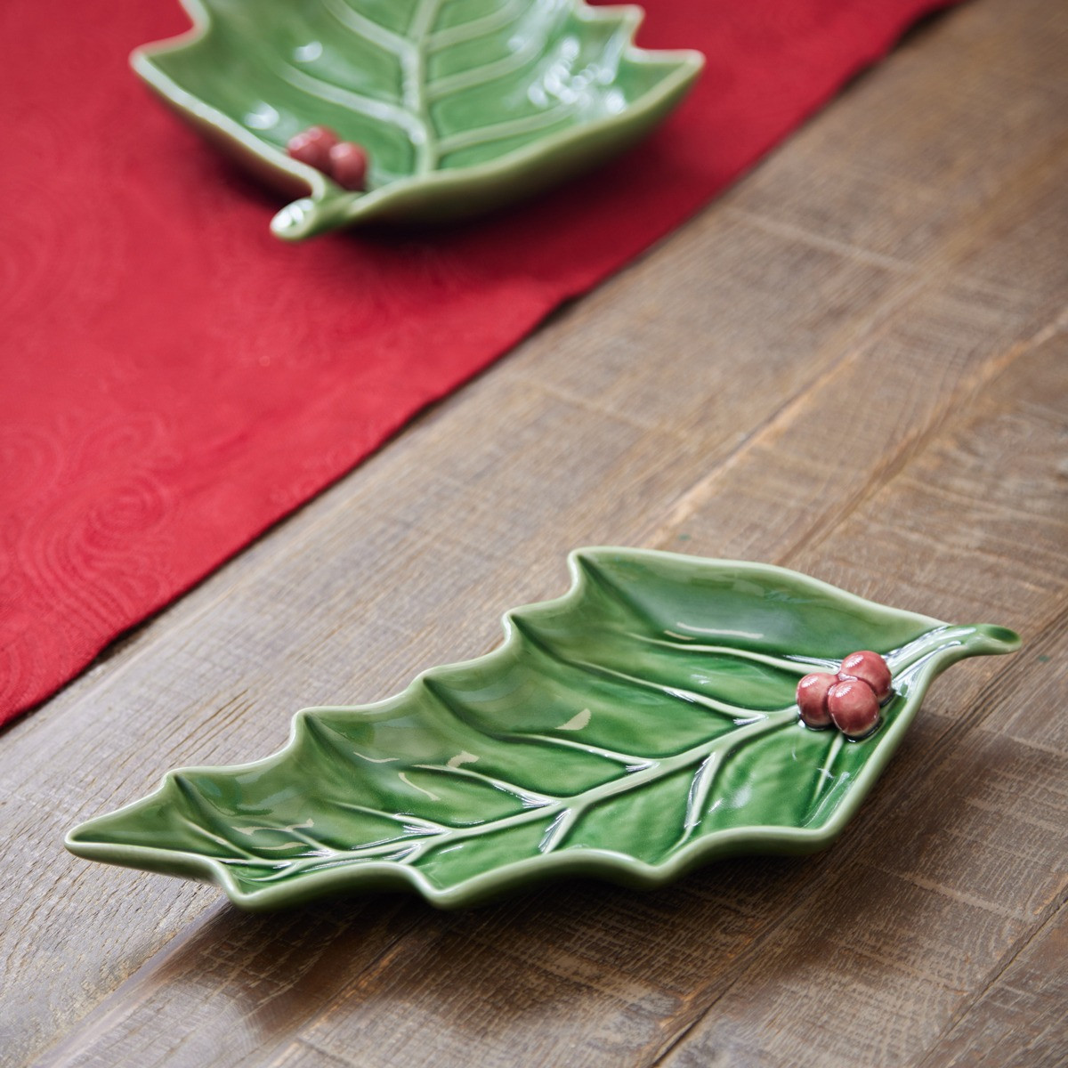 Bring seasonal charm to the dinner table with the Small Holly Leaf Platter. Deep green and rich red accents make this a standout piece that is sure to become a family heirloom. Each piece is handcrafted in Portugal.