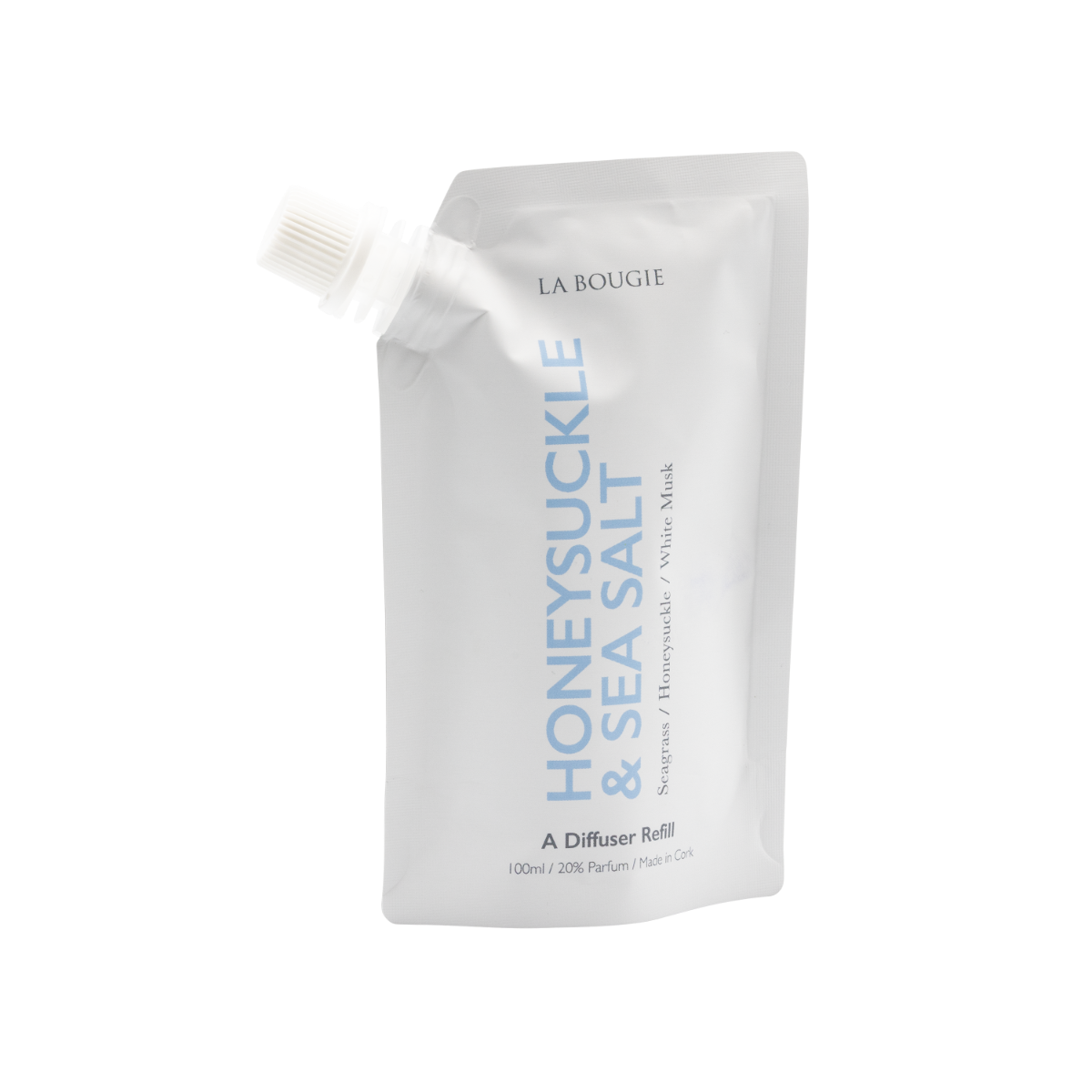 Our Honeysuckle and Sea Salt Room Diffuser is special. Each one is blended with over 20ml of pure perfume and a secret blend of oils. The natural rattan reeds will gently diffuse the fragrance for at least 3 months. Turn the reeds every few days for an extra burst of fragrance. La Bougie diffusers capture beautiful scents using prized aromatical and botanical oils. This fragrance has notes of seagrass, honeysuckle & white musk to perfectly capture the aroma of the West Cork coastline which inspired it.