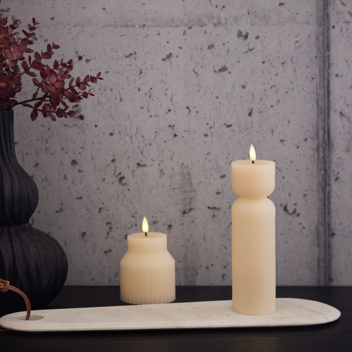 Ivory Ribbed LED Candle - Large