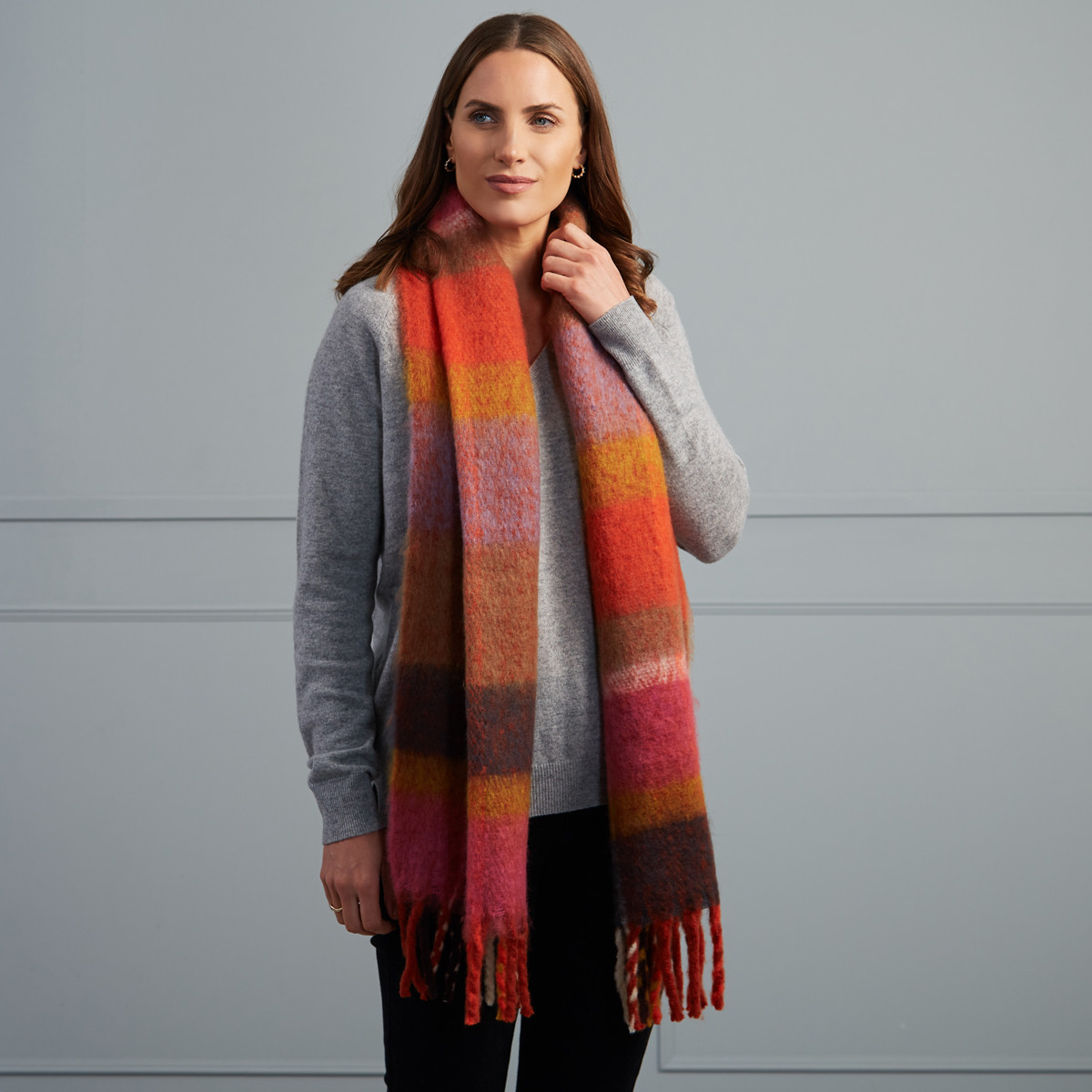 Wrap up this winter with the beautiful Lizzie Superfluffy Scarf. Designed with a multicoloured woven check pattern. One size.