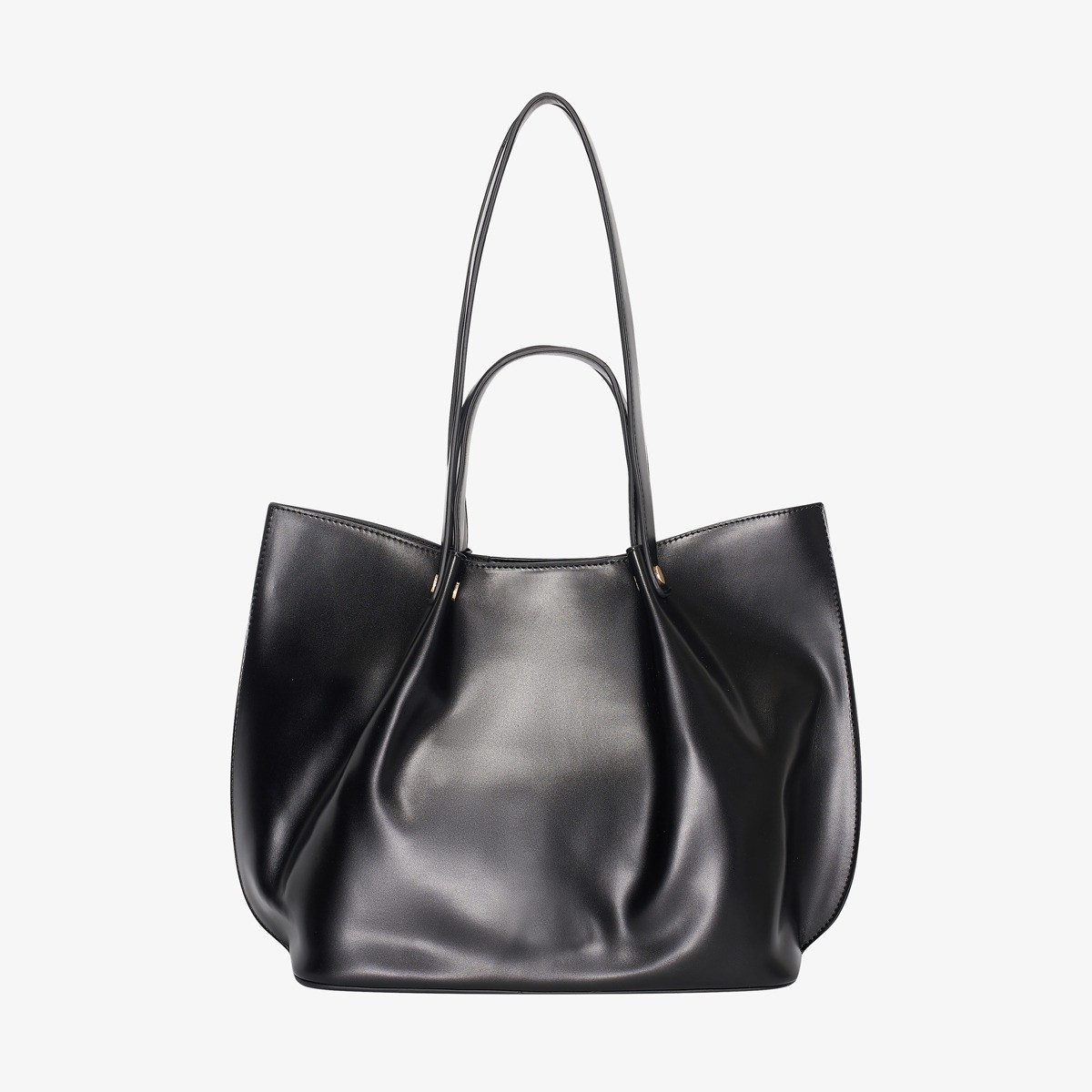 Spacious black tote with a soft, slouchy silhouette. Features dual handles for versatile carrying options. Minimal design with a refined finish.