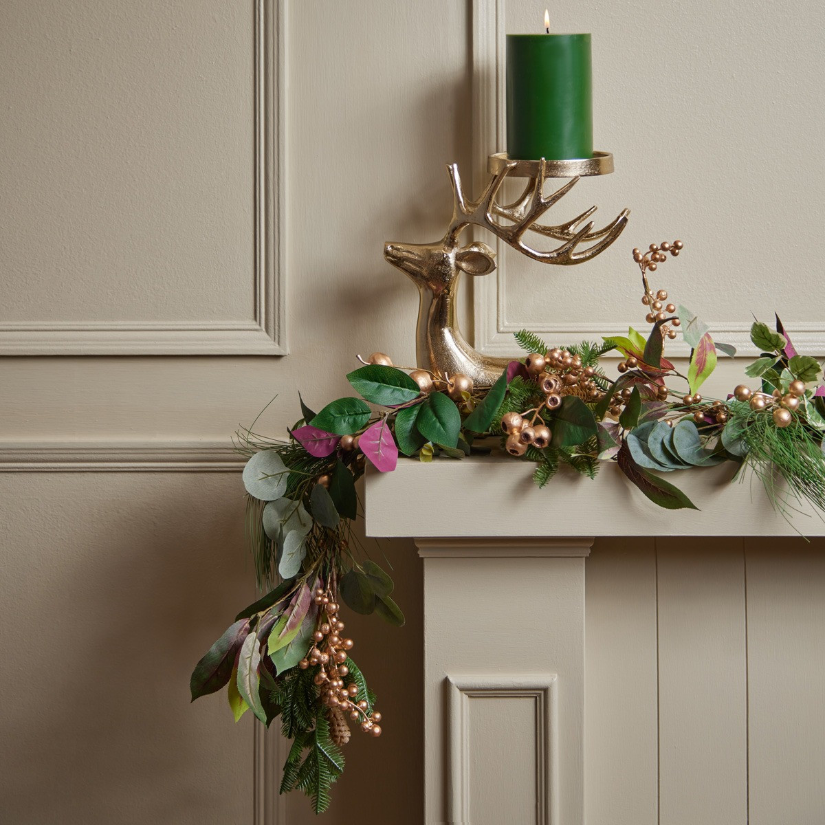 Whether draped across a mantel or wrapped around a banister, our Mixed Leaf with Gold Berry Garland adds an elegant, festive touch to your home.