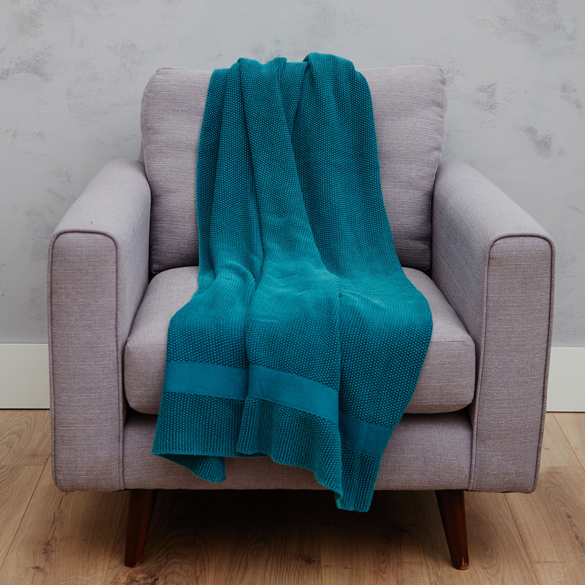 Moss Stitch Peacock Blue Throw