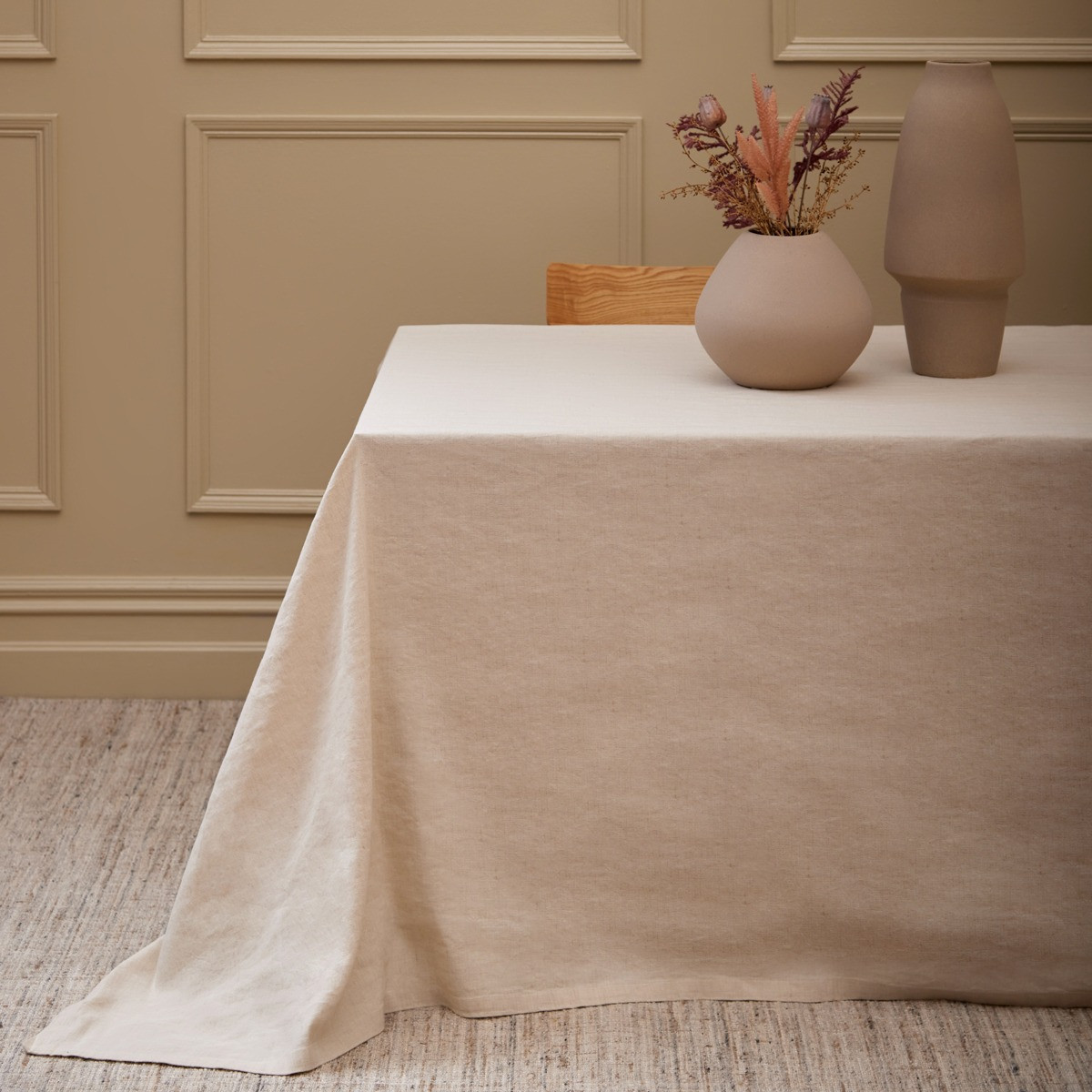 Add some natural texture to your dining table with our Cotton and Linen Blend Tablecloth.
