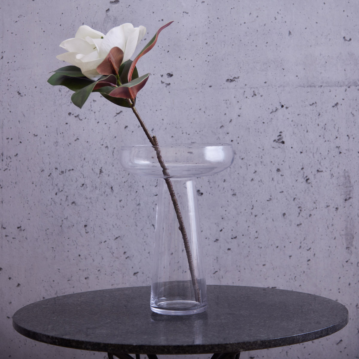 With its narrow base and wide, open top, our Nici Vase brings a sculptural touch to any setting. The clear glass design is perfect for a single stem or a minimal arrangement, offering a clean, modern accent for shelves, tables, or windowsills.