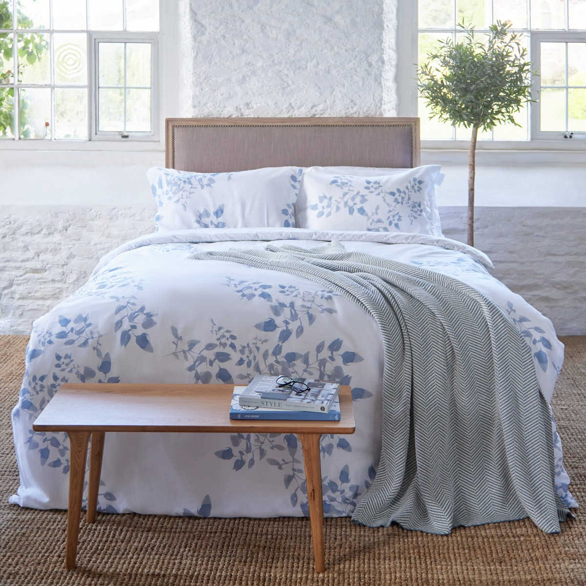 Transform your bedroom into a serene retreat with our Northwind Duvet Set. Made in Portugal, this set features a delicate blue floral pattern on a crisp white background. The duvet set offers a cohesive and calming aesthetic, perfect for any decor. Enjoy the softness, comfort, and durability of premium cotton, ensuring a restful night's sleep. Additional pillowcases can be purchased as a set of 2.