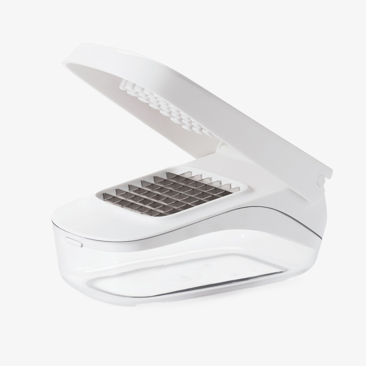 Effortlessly chop onions, peppers, and other ingredients with one simple movement, without needing to take off the lid. The stainless-steel blade design and sunken cutting area keep food steady, while the lid offers leverage for efficient chopping.