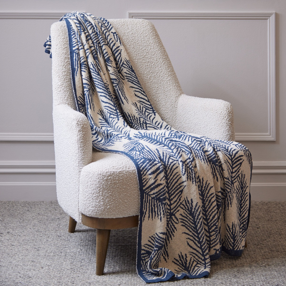 Bring a touch of the tropics to your home with our Palm Leaf Throw. Its bold leaf design in soft cream and deep blue adds vibrant character to any space, while the cosy texture makes it perfect for relaxing on the sofa or layering over a bed.
