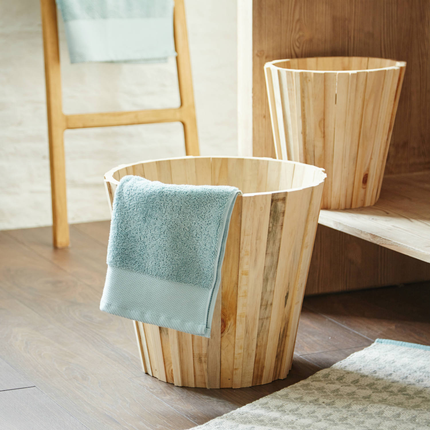 Handcrafted in warm blond poplar wood, our elegant storage bin is slated to create a classic, elegant shape to suit a wide variety of decors. Just as at home in the bathroom as it is in the bedroom or home office, the Poplar Wood Bin is a versatile and elegant storage solution for the modern home.