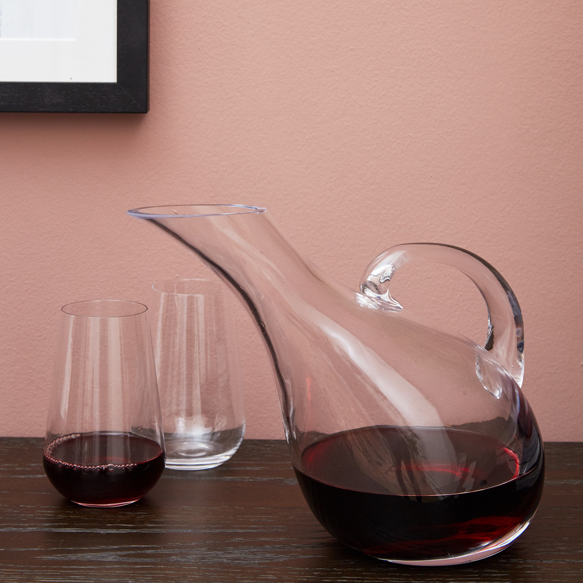 Showcase your favourite drink in an elegant manner with this contemporary glass decanter. Dishwasher safe.