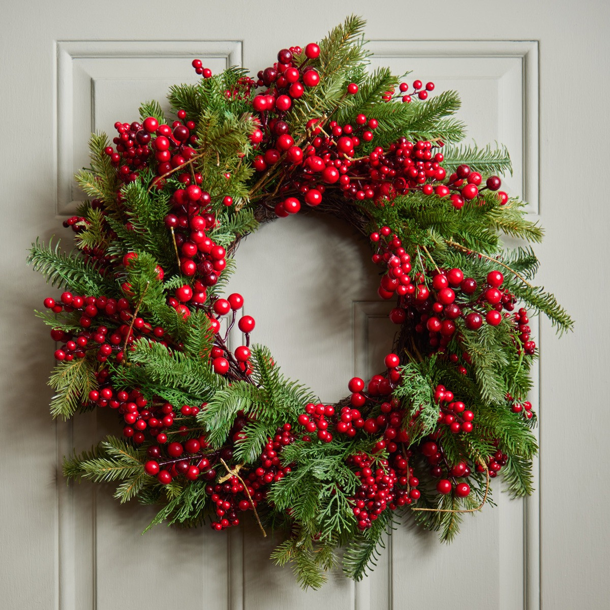 Add festive charm to your entryway with our Red Berry and Pine Wreath. A versatile piece that captures the spirit of the season beautifully.