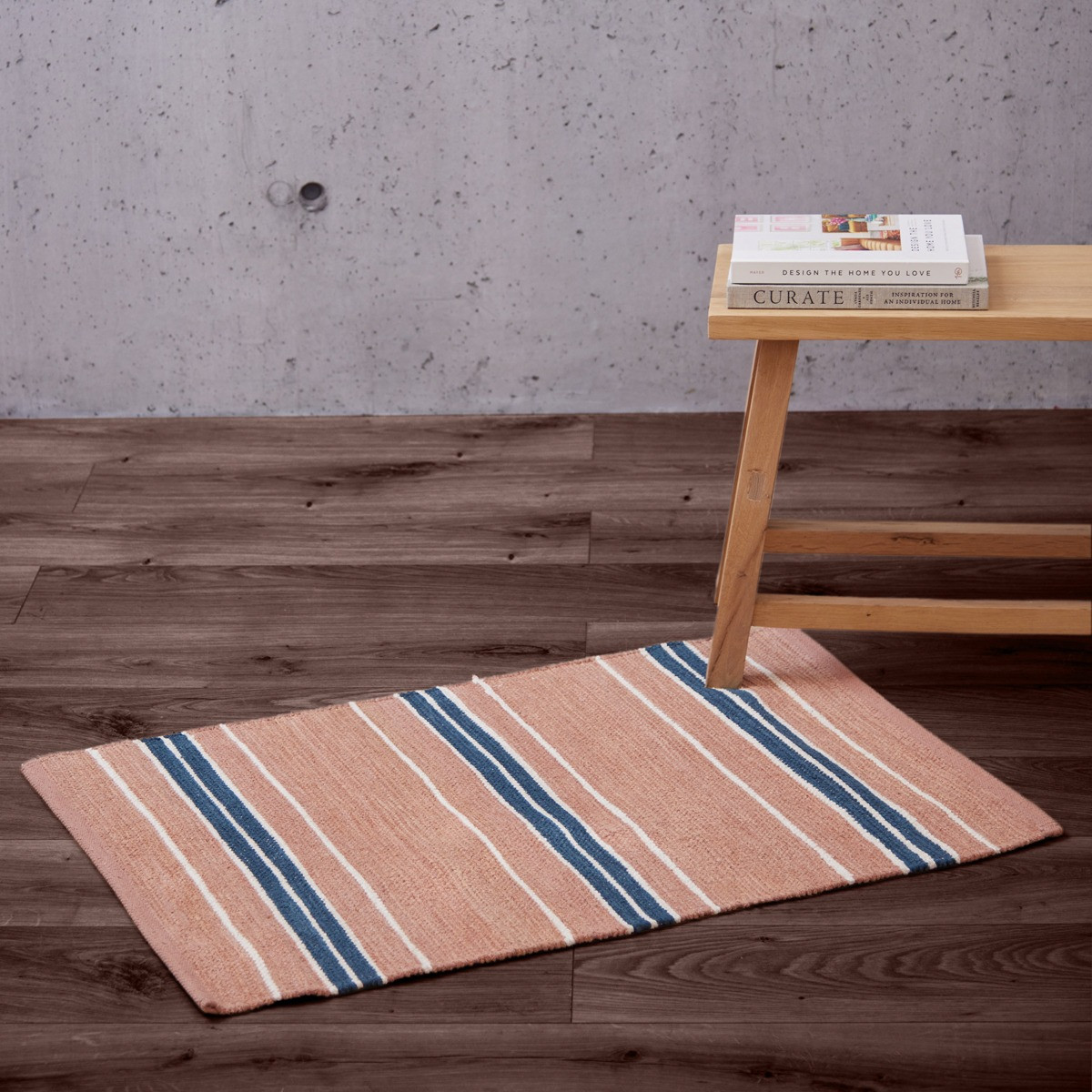 This runner combines natural café tones with crisp, contrasting stripes. Its lightweight feel makes it easy to position in living rooms, kitchens, or casual corners.