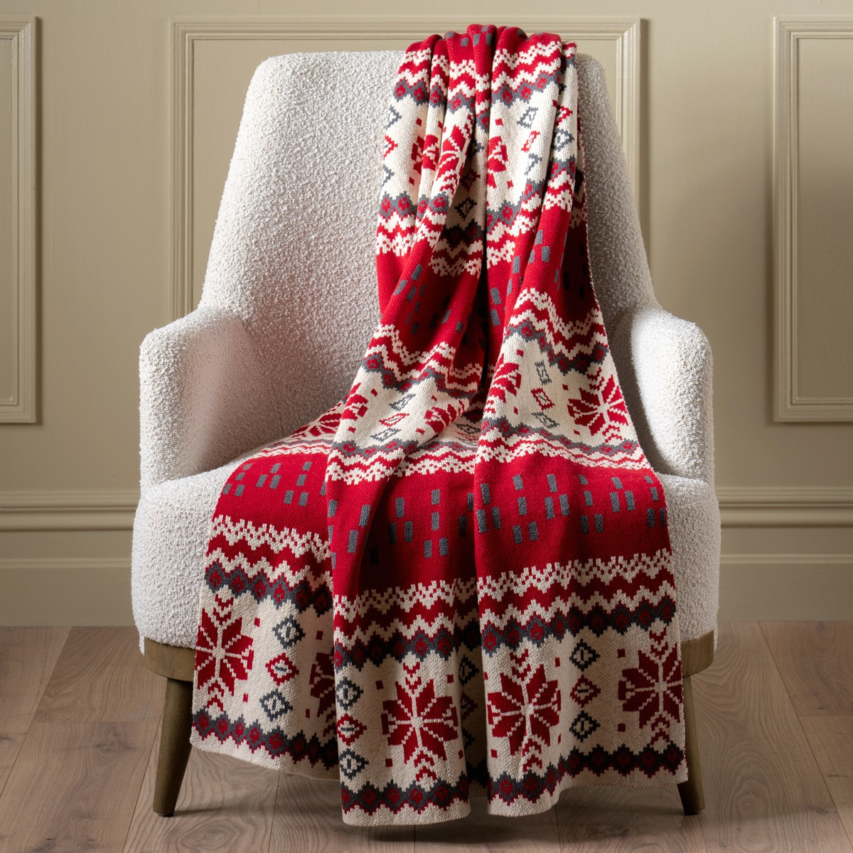 Soft, cosy, and full of seasonal charm, our Snowflake Throw brings warmth with its bold red snowflake and gentle grey accents. Perfect for curling up on chilly days or adding a welcoming touch to your winter setup.
