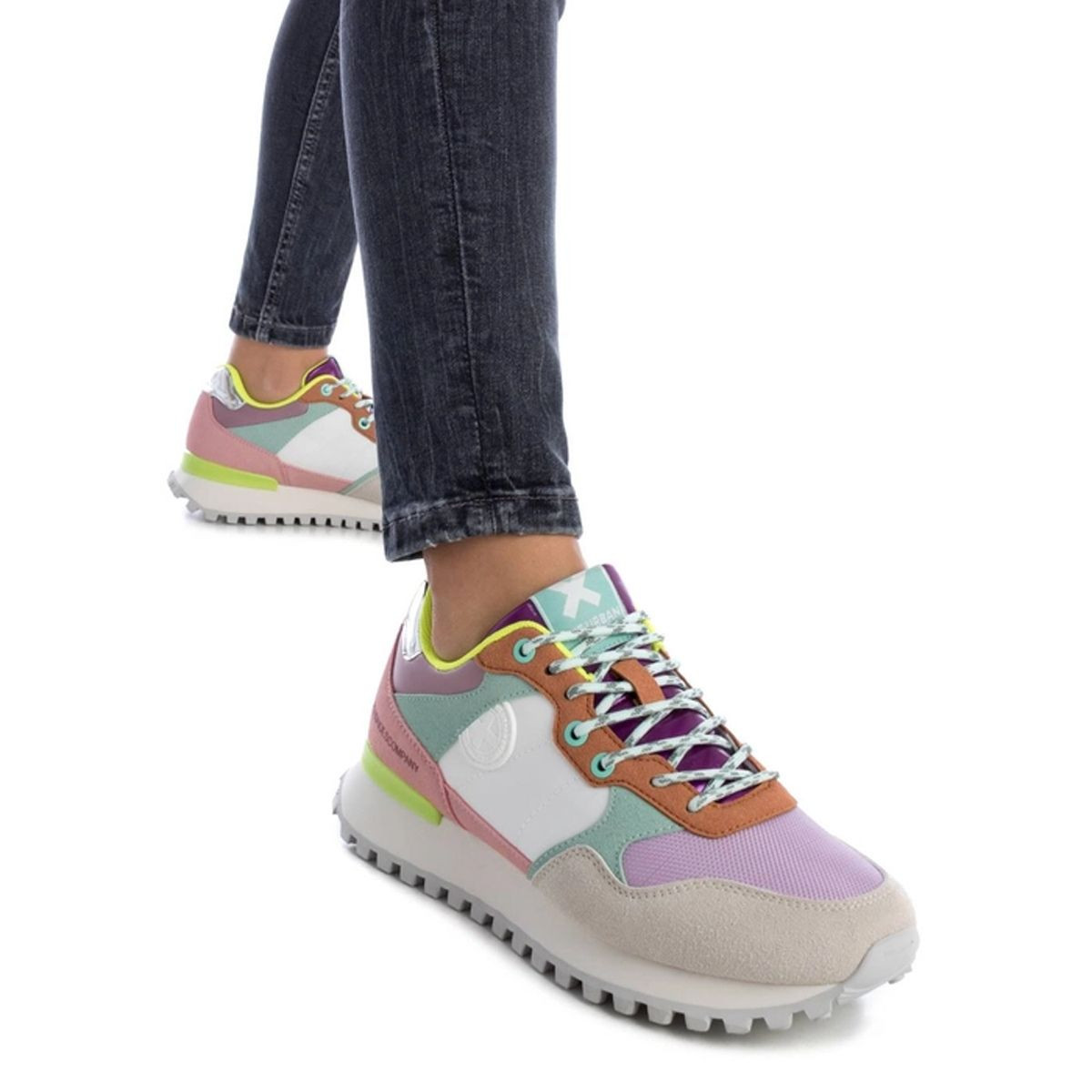 Add a colour pop with these comfortable trainers. In a combination of textile and faux suede, these trainers have a lace-up closure with a 3cm non-slip rubber sole and a removable padded insole making them ideal for wearing all day. Style casually with a shirt, jumper and jeans or with a midi-dress and chunky knit cardigan for a relaxed feminine look. This model has been certified vegan by the world organization PETA. (Organization for Animal Rights).