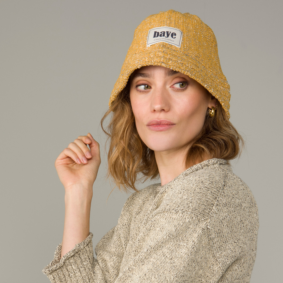 The Thinker is a knitted bucket hat, an article of dress with a 120 year old history and an Irish origin story. Originally knitted in wool and worn by fishermen and outdoor workers, it is reimagined in a stretch knit crafted from recycled fibres, maintaining a sustainable ethos.