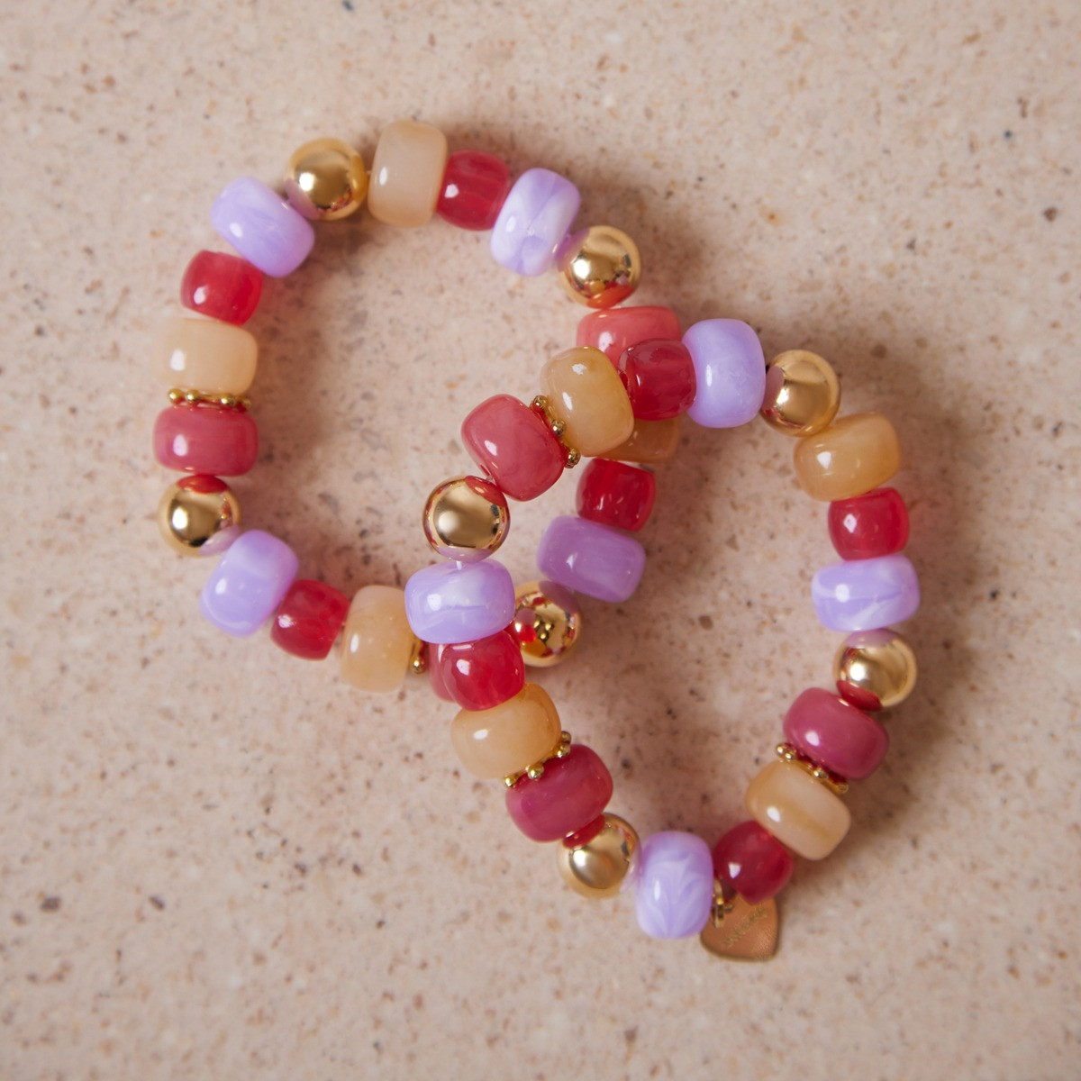 This beaded bracelet set features smooth, rounded beads in warm coral, lilac and soft amber tones, finished with gold‑tone accents for a subtle touch of shine. Designed to be worn stacked or individually, they add colour and charm to everyday outfits.