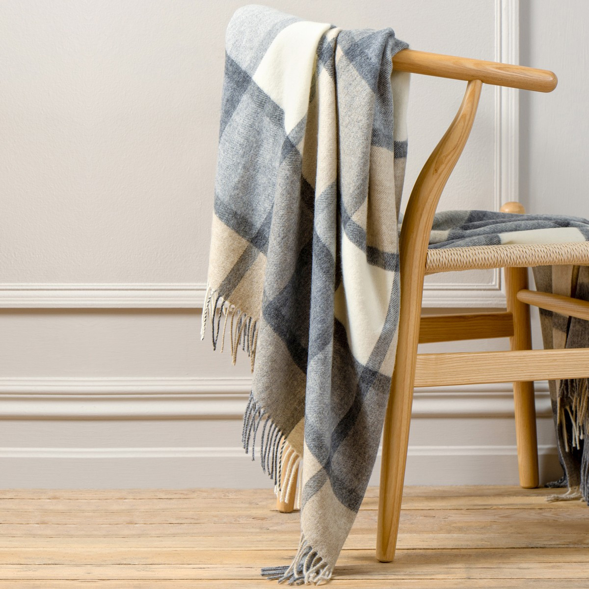 White & Grey Windowpane Merino Wool Throw